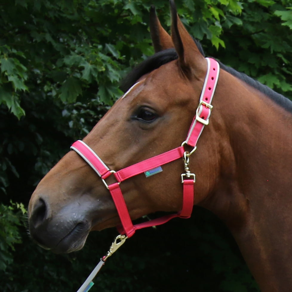 De legendarische Bucas Dublin halsters zijn ontworpen om veel comfort te bieden. Dit wordt geleverd door de zachte, maar sterke "zijde-feel" webbing en de gewatteerde neus- en hoofdbanden. Een speciale, gevormde ring vergemakkelijkt het openen en sluiten van het halster met de karabijnhaak en voorkomt dat de haak tegen het paard schuurt. De karabijnhaak is van een ontwerp dat niet wordt aangetast door sneeuw, ijs en lage temperaturen. Er is ook een verstelbaar kopstuk met een gesp.