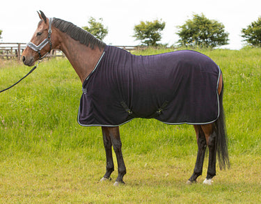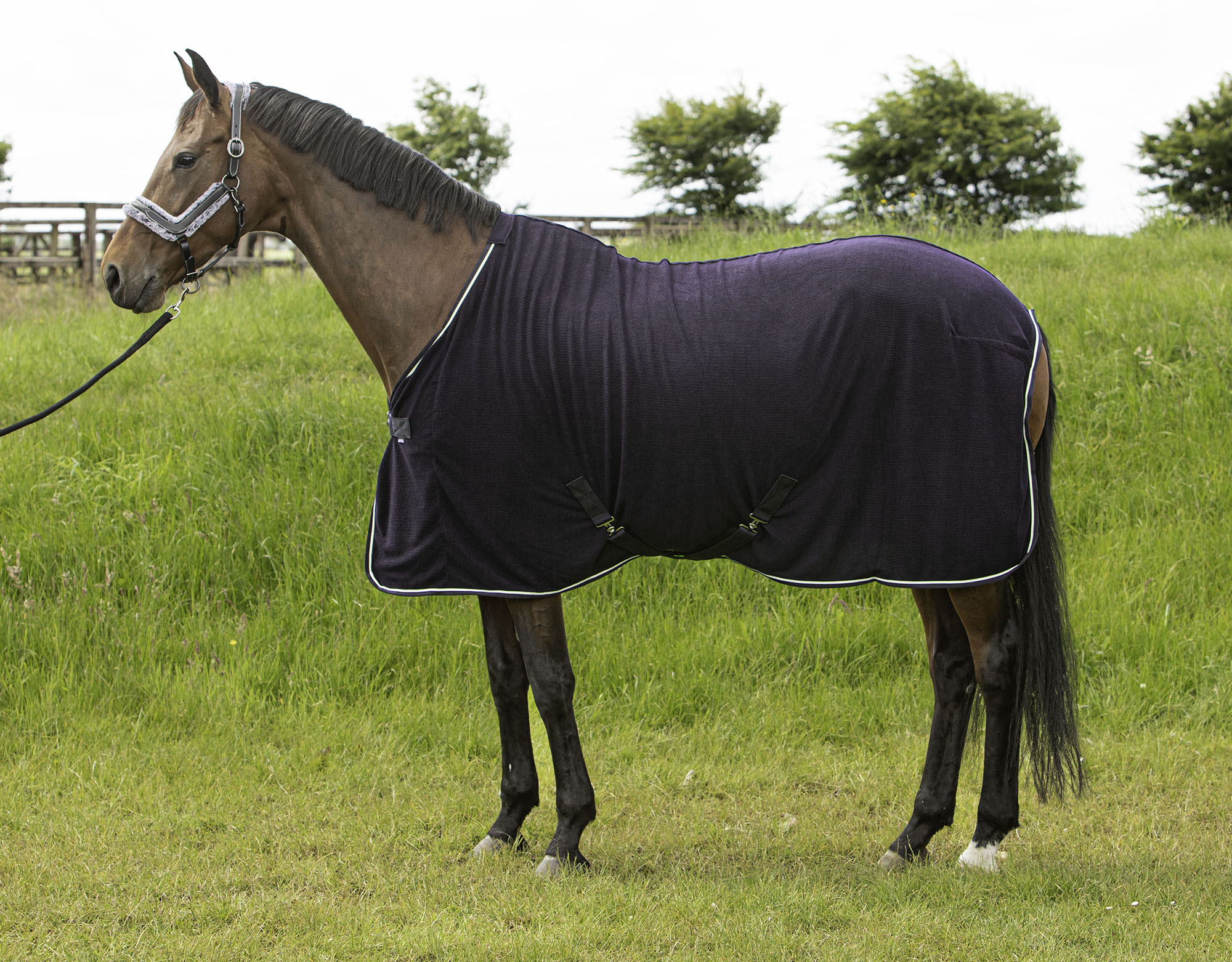 Corduroy deken met hoog ademend gehalte. Goed te gebruiken als cooler deken of als zweetdeken. Voorzien van laag aangezette kruissingels en een enkele voorsluiting en een staartlus.