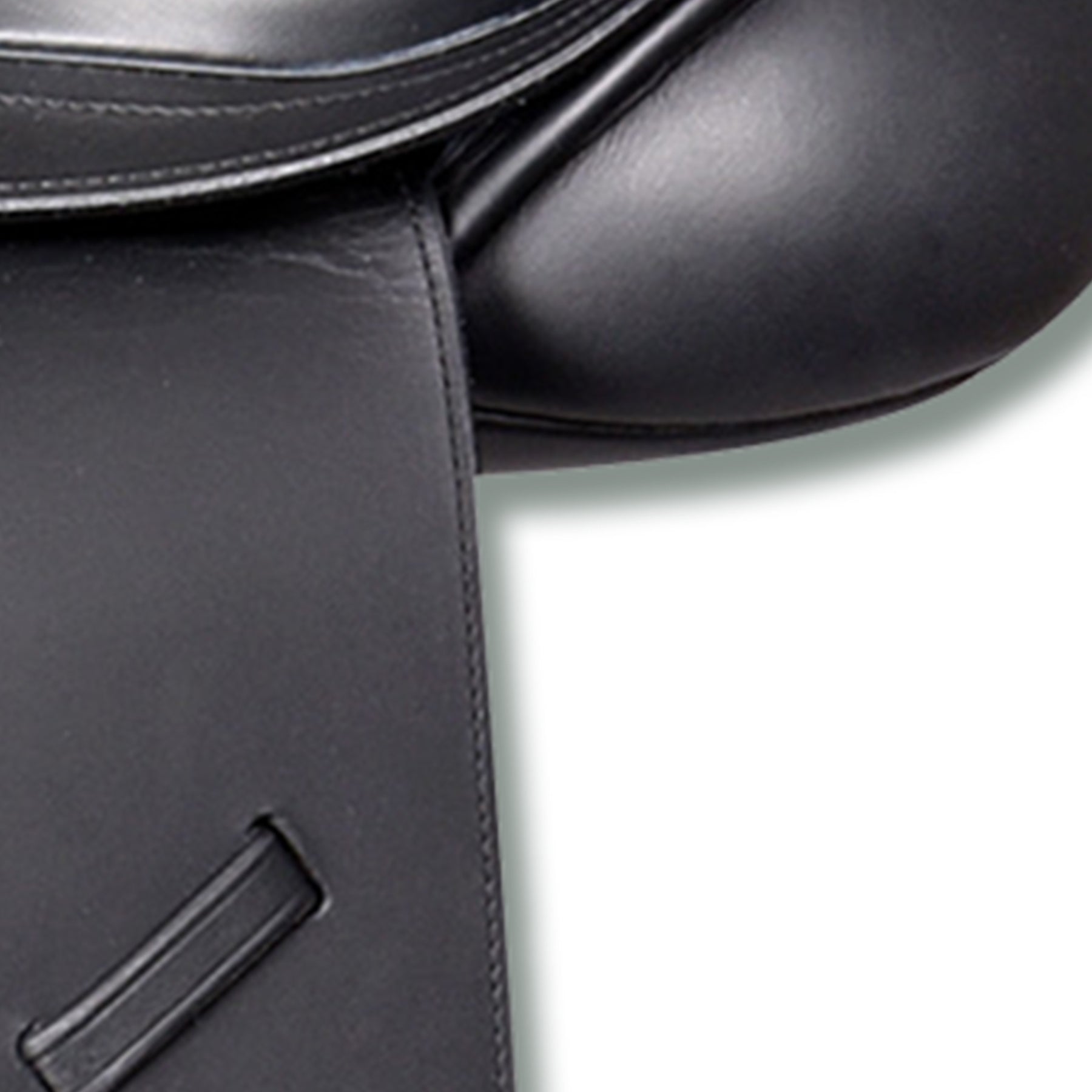 The Premium Waldhausen Dressage Saddle made of full-grain leather is a high-quality alternative. With its extra-soft seat and grippy leather, this saddle offers stability and comfort. Featuring an elastic synthetic tree, replaceable gullet and Y-strap, this is a high-quality saddle for the discerning rider. This saddle comes with 2 pairs of knee blocks plus a fleece/600 denier polyester protection cover. Supplied ex-works with green gullet.