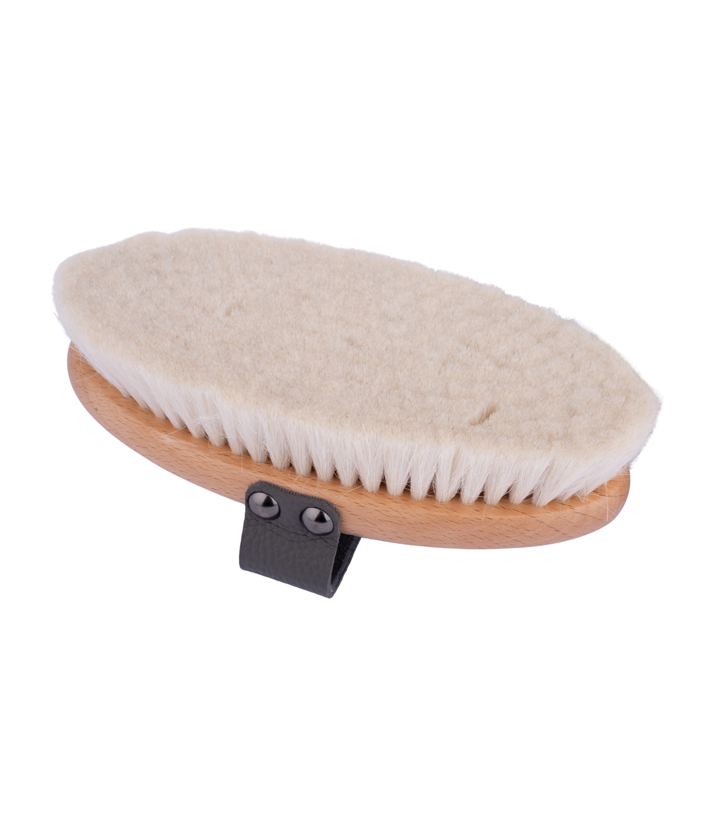 The high-quality goat hair grooming brush gives the coat a beautiful shine and is perfect for finishing. The soft and smooth goat hair does not leave any dust particles on the horse"s coat and also ensures an extra pleasant grooming experience. Natural materials prevent electrostatic charging.