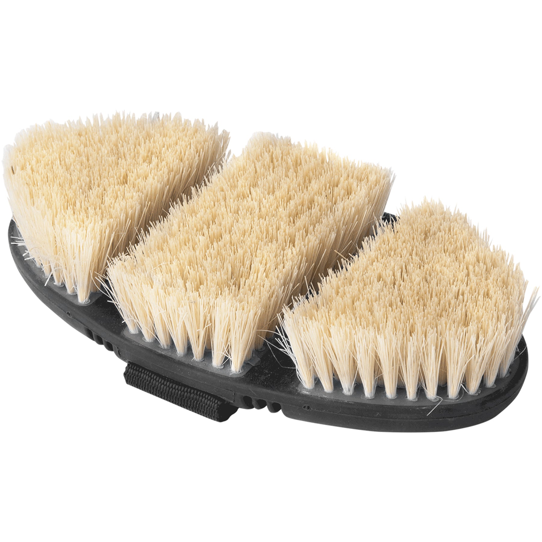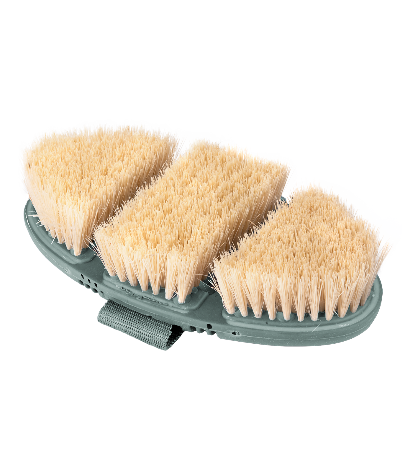 Its sturdy natural bristles make it perfect for removing hard dirt such as mud from all over the horse.