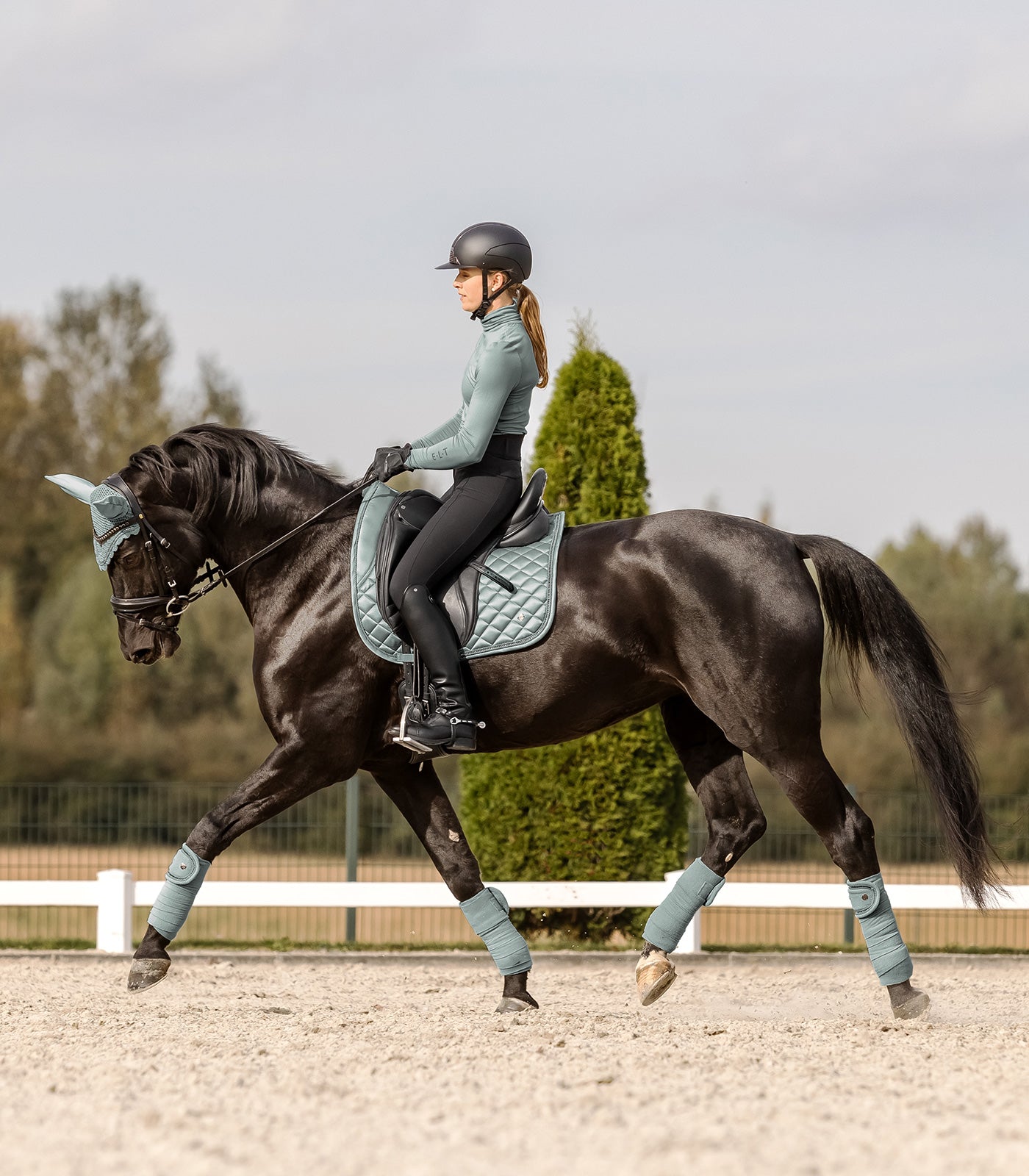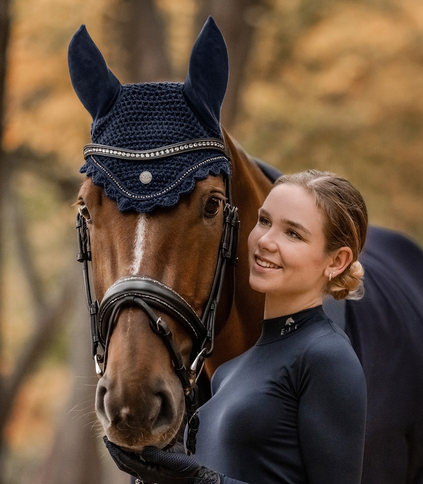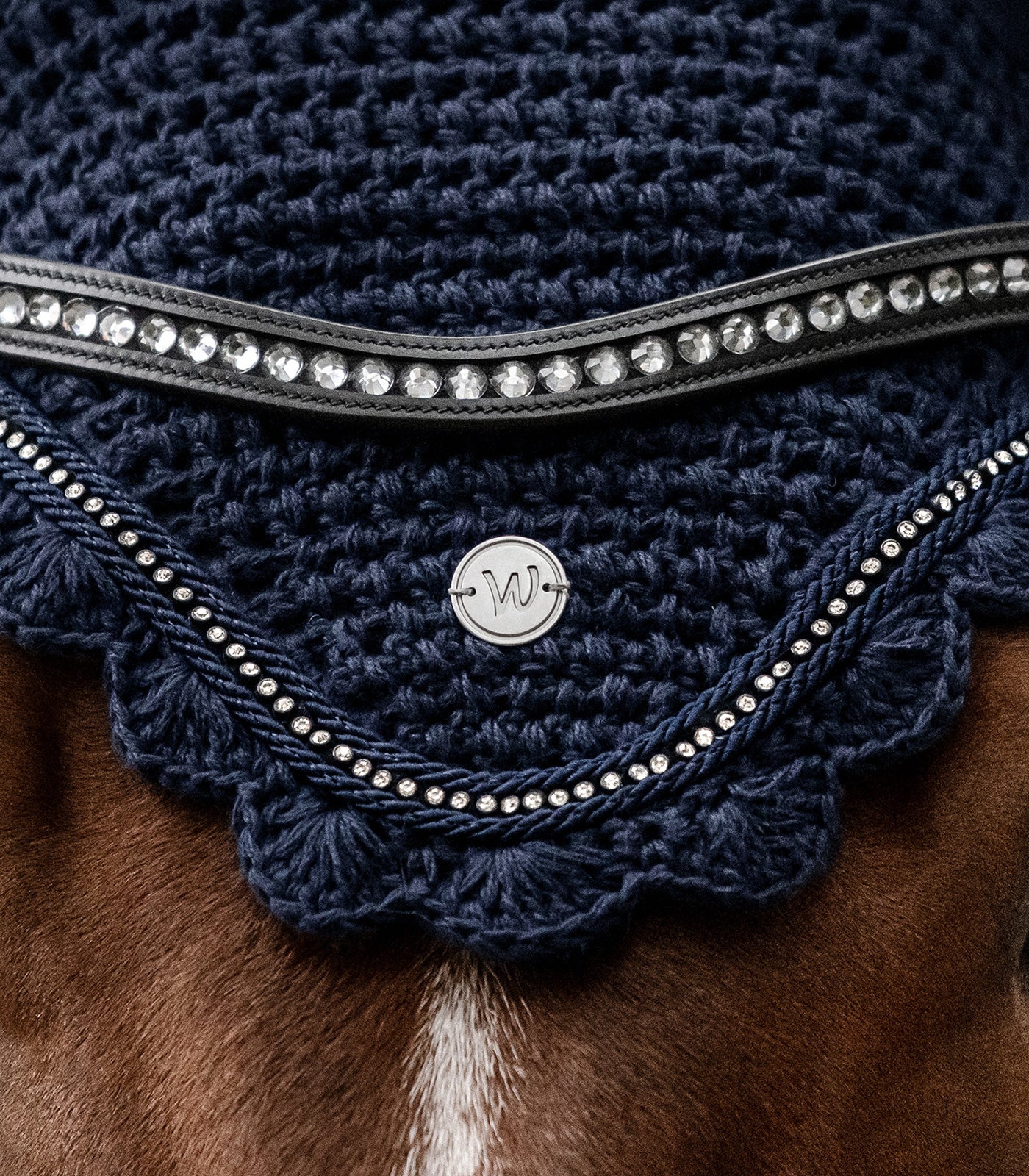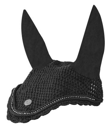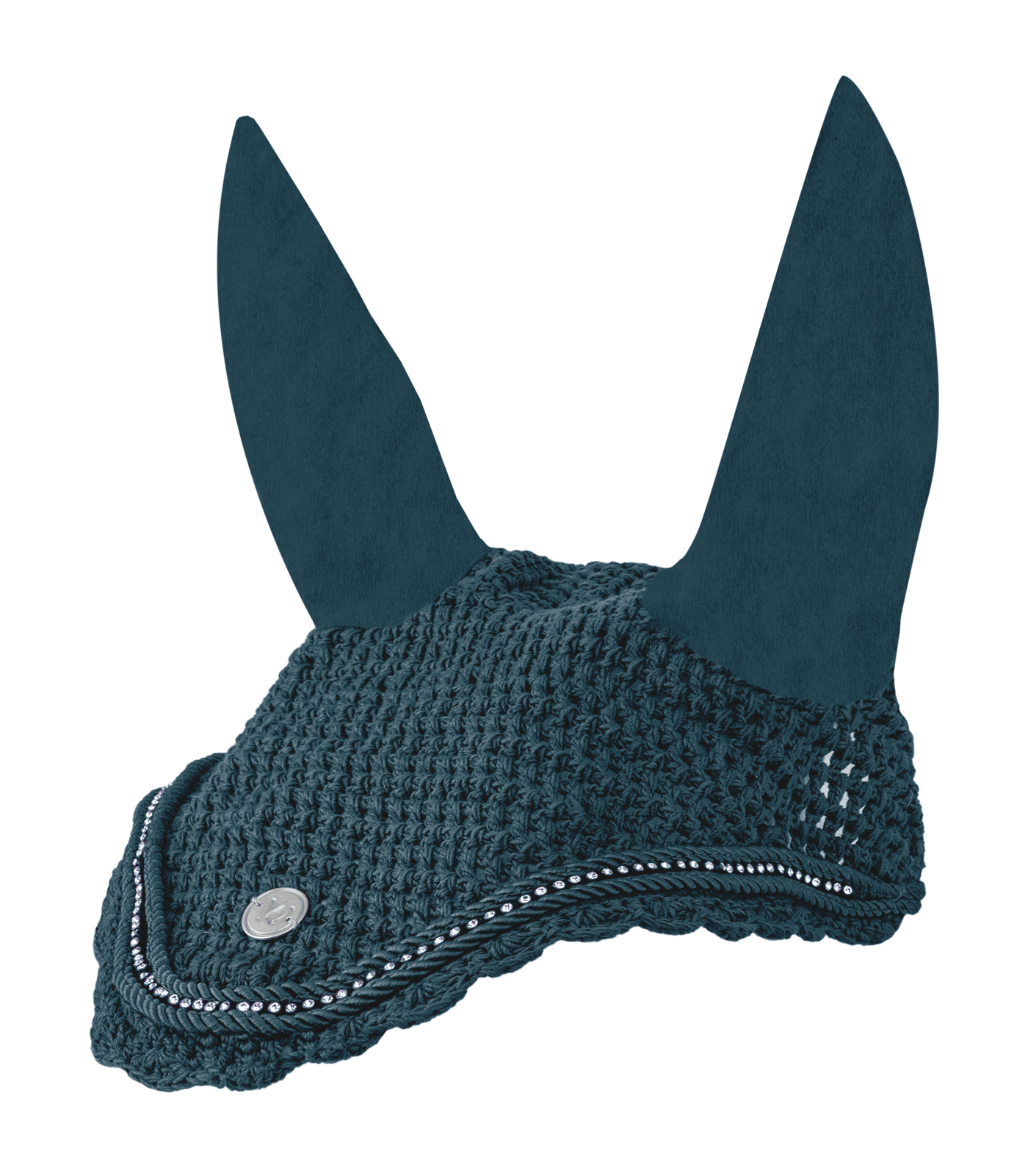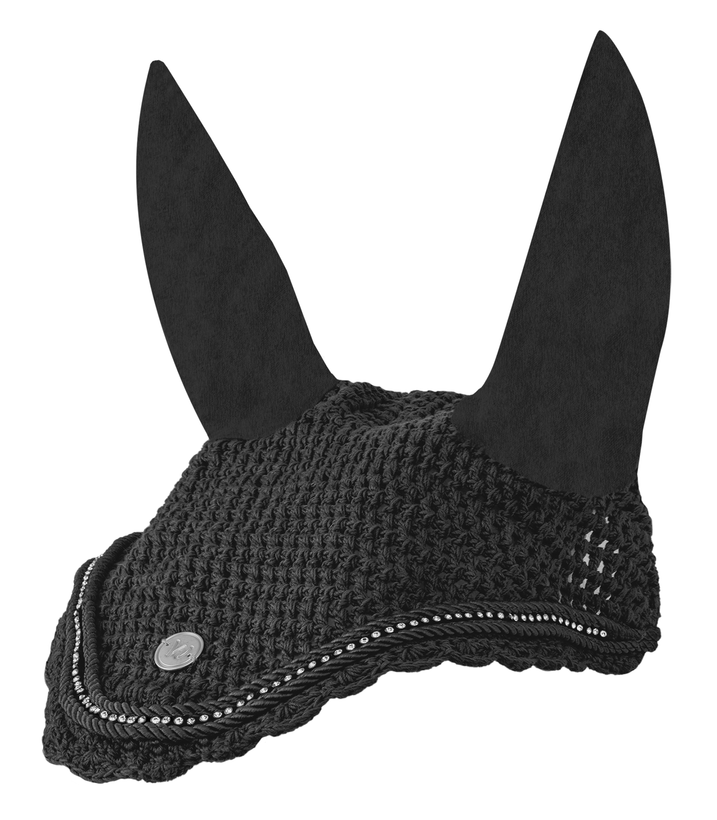 High-quality fly veil with elasticated ears, matching our Nepal collection. A metal plate and shimmering rhinestone band between two tonal decorative cords ensure an elegant appearance.