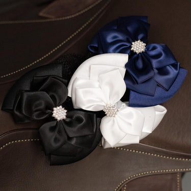 Luxe haarstrik met haarnetje. Gedecoreerd met zilverkleurige kristallen.
