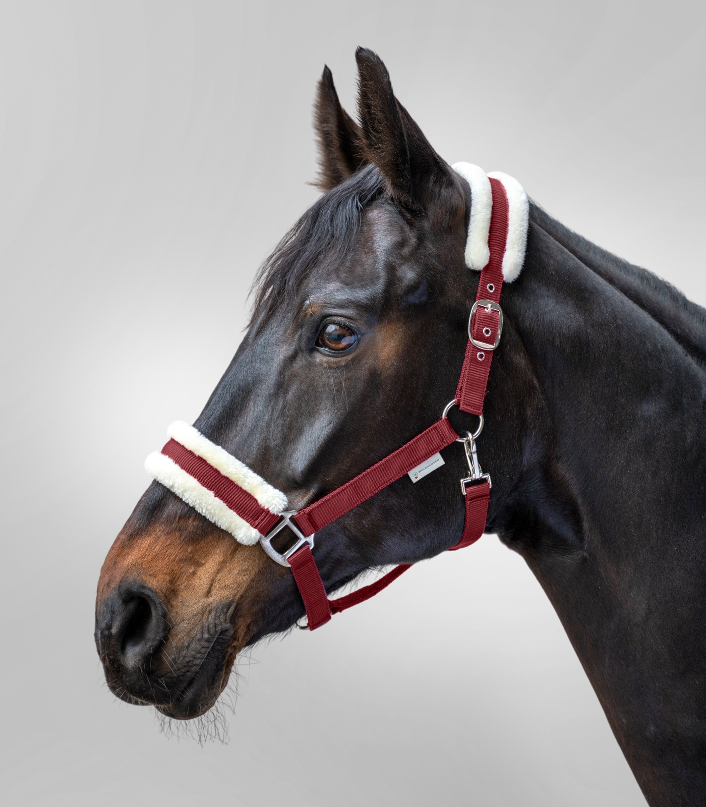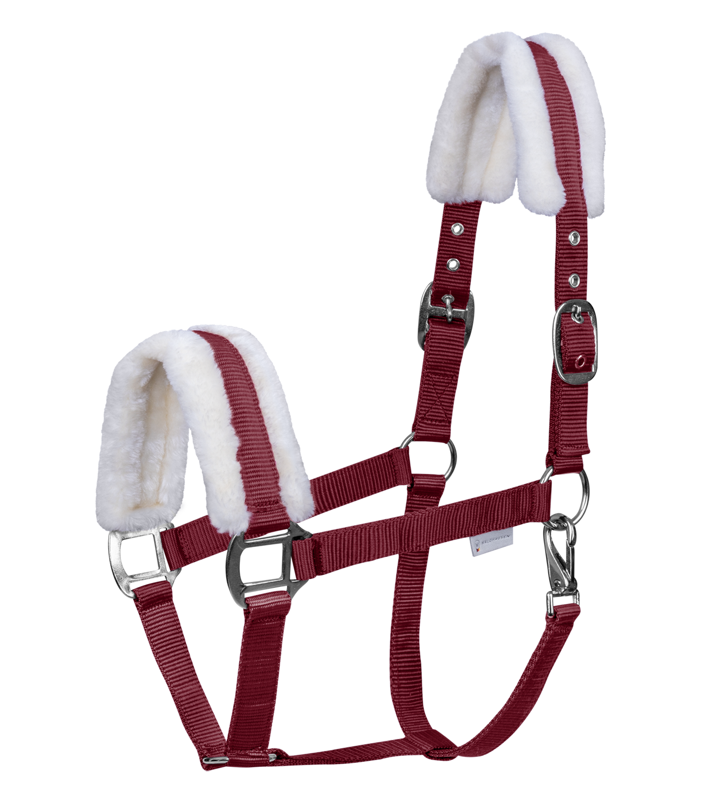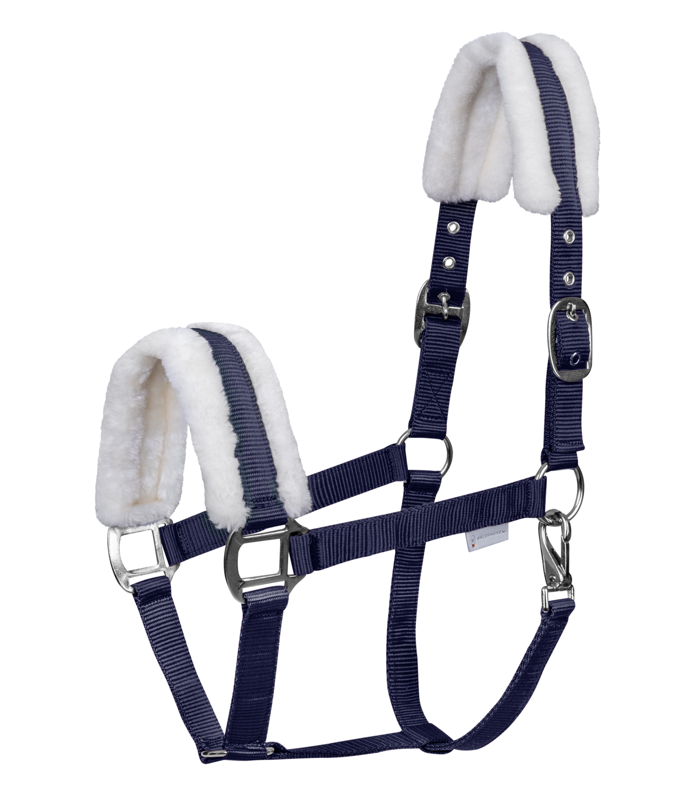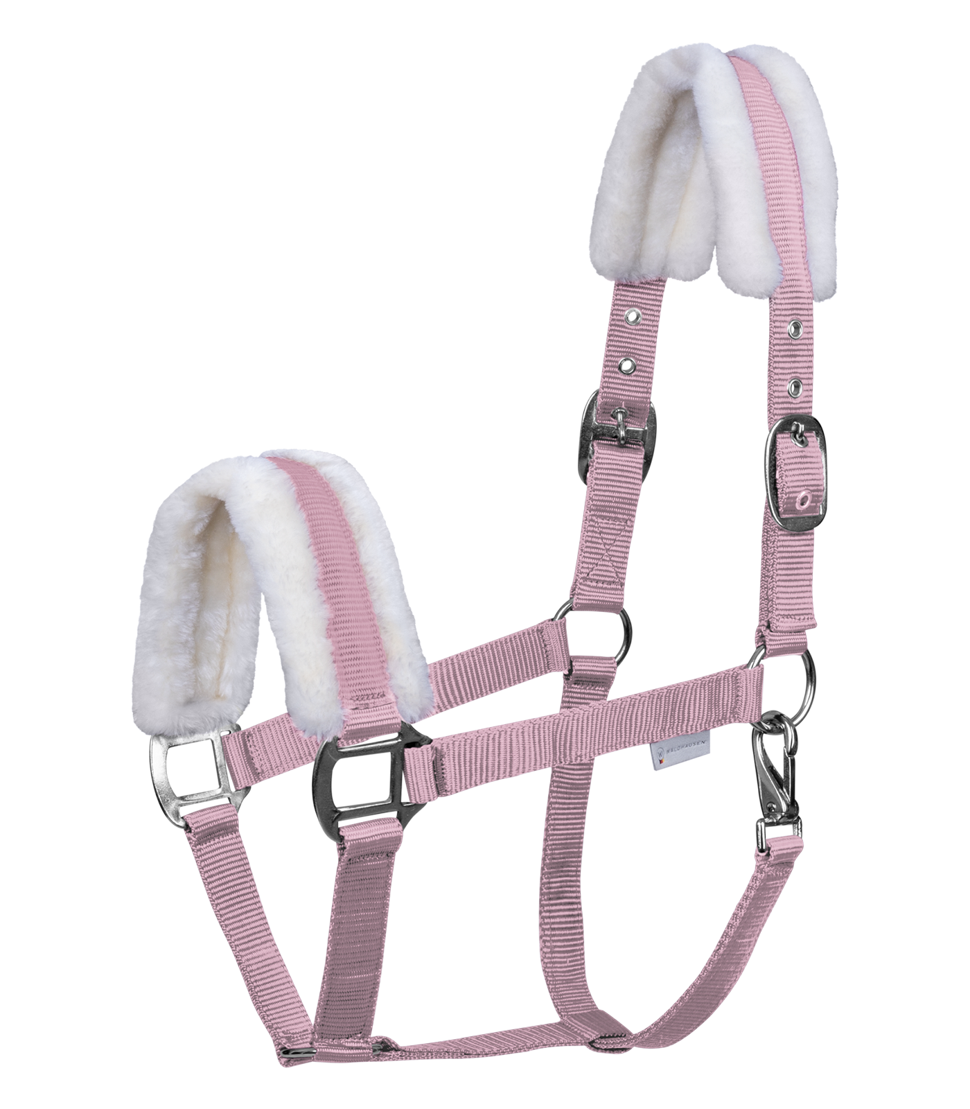 Fluffy halter with soft padding in synthetic fur on headpiece and noseband. Adjustable on both sides at headpiece.