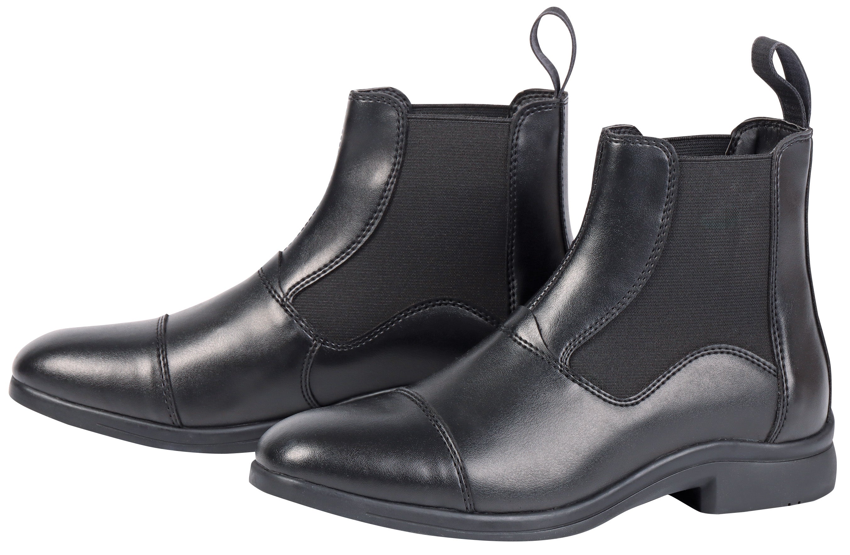Synthetisch lederen jodhpur met elastische inzet voor optimale aansluiting en een makkelijke instap. De jodhpur heeft een rubberen zool.