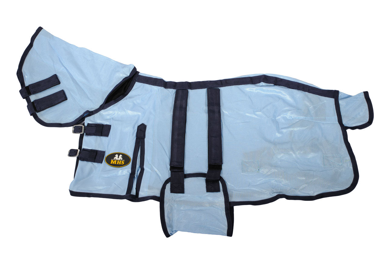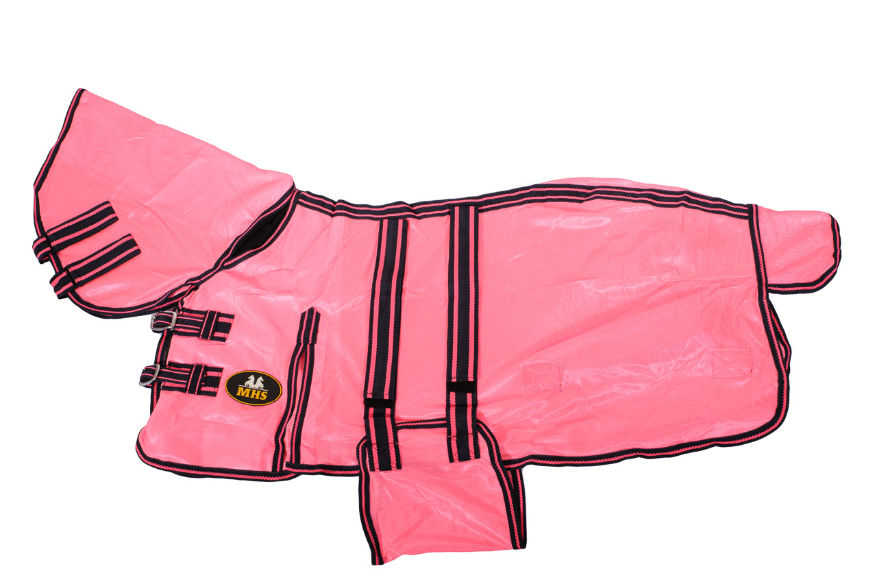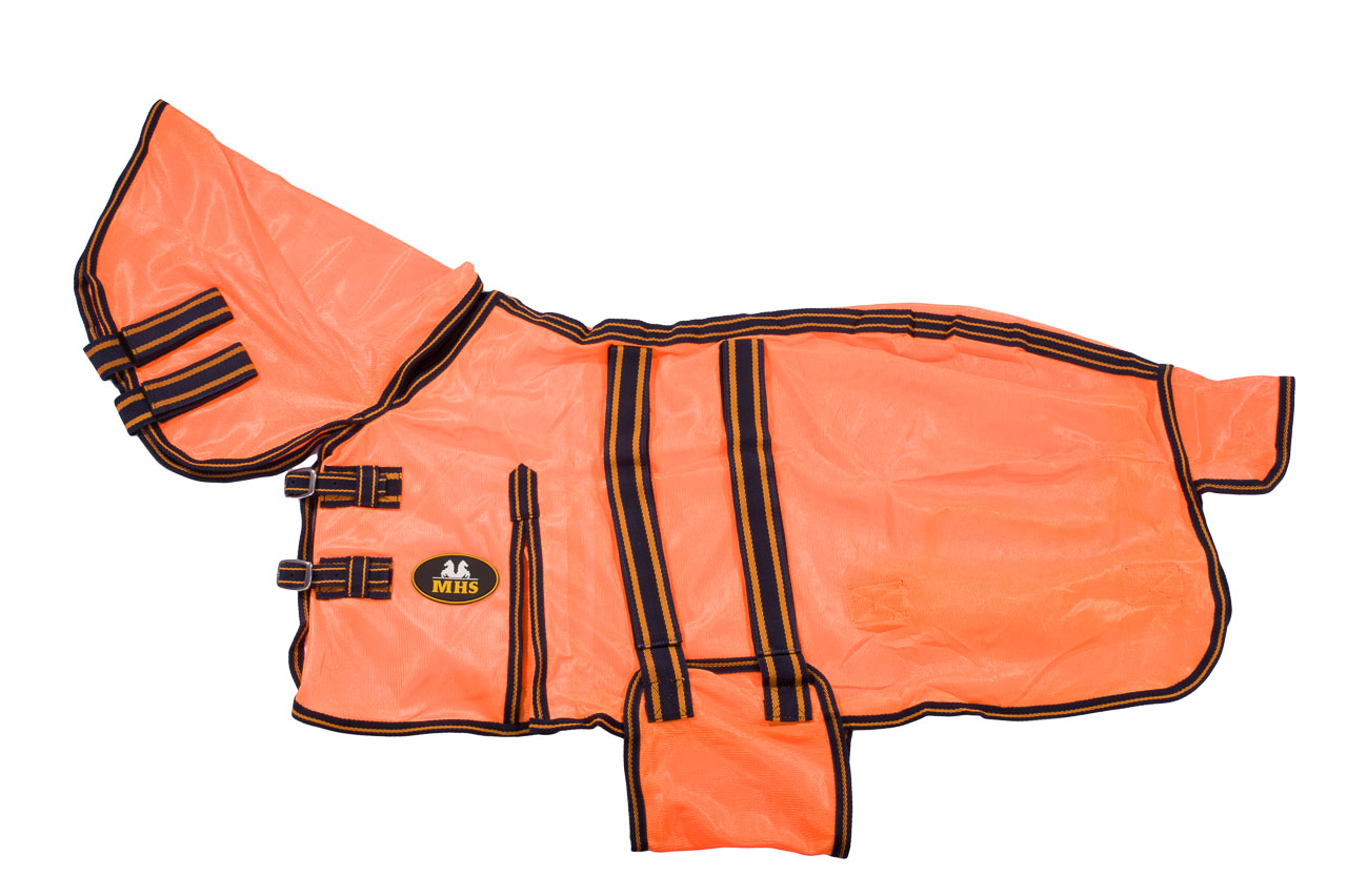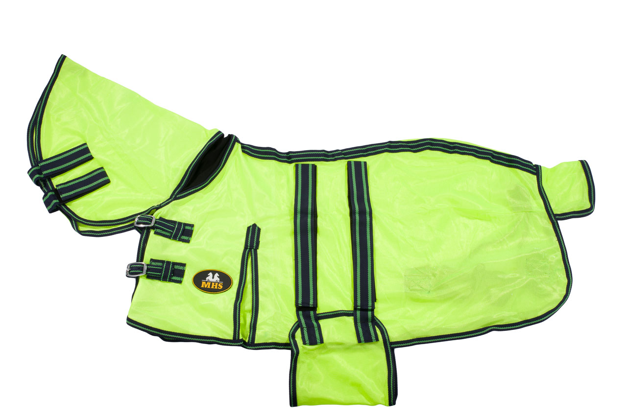 Bescherm jouw paard deze zomer tegen stekende insecten en ander vliegend ongedierte met de MHS Vliegendeken Neon met vaste hals. Gemaakt van stevig en fijnmazig polyester_mesh, biedt deze vliegendeken optimale bescherming tegen muggen, vliegen en dazen. De deken is dun genoeg zodat jouw paard het niet te warm krijgt en kan op extreem warme dagen eerst worden nagespoten voor extra verkoeling. De MHS Vliegendeken Neon is voorzien van een vaste hals, buikflap en verstelbare bilkoorden. De dubbel verstelbare borstsluiting met verstelbare clips en klittenband zorgt voor een goede pasvorm. De verstelbare kruissingels en staartflap zorgen voor extra bescherming en de hoog geplaatste loopsplitten bieden optimale bewegingsvrijheid. Deze vliegendeken is verkrijgbaar in verschillende maten voor alle type paarden. Raadpleeg onze maattabel voor de perfecte pasvorm. Let op, deze vliegendeken is niet waterbestendig en heeft geen vulling. Bescherm jouw paard deze zomer met de MHS Vliegendeken Neon met vaste hals.