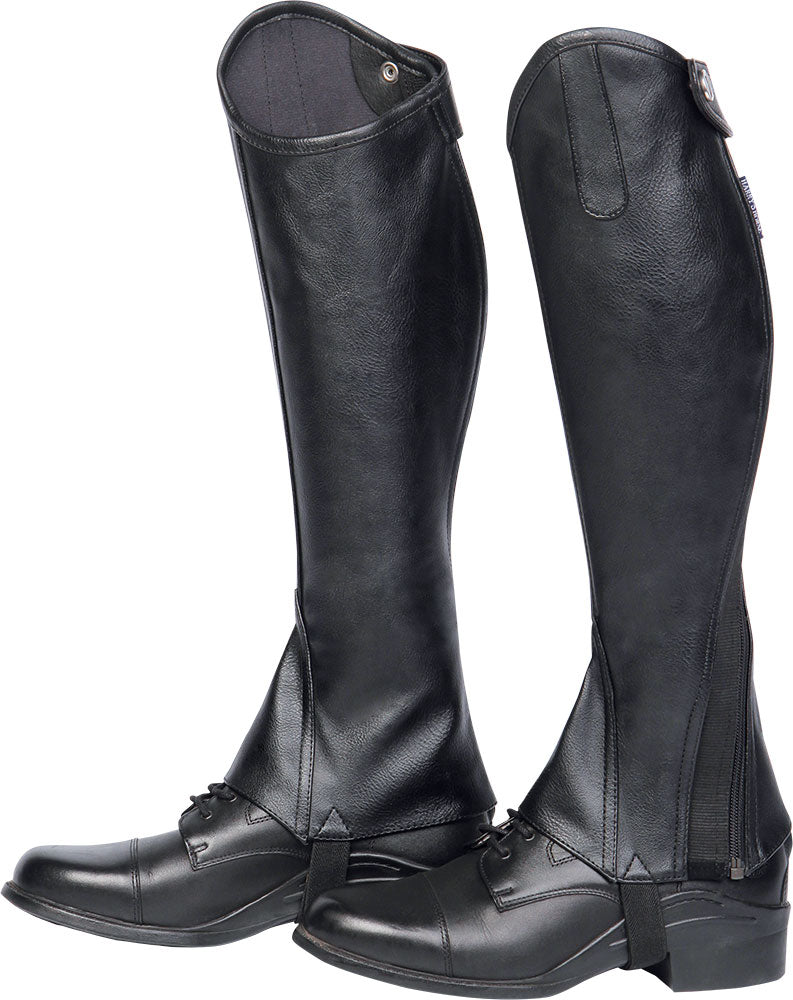Luxe minichap/ soepele gaiter met elastisch kuitgedeelte. Uitgevoerd met zeer luxe, vernieuwende gedraaide rits voor een optimale pasvorm. Vervaardigd uit hoogwaardige synthetische materialen.