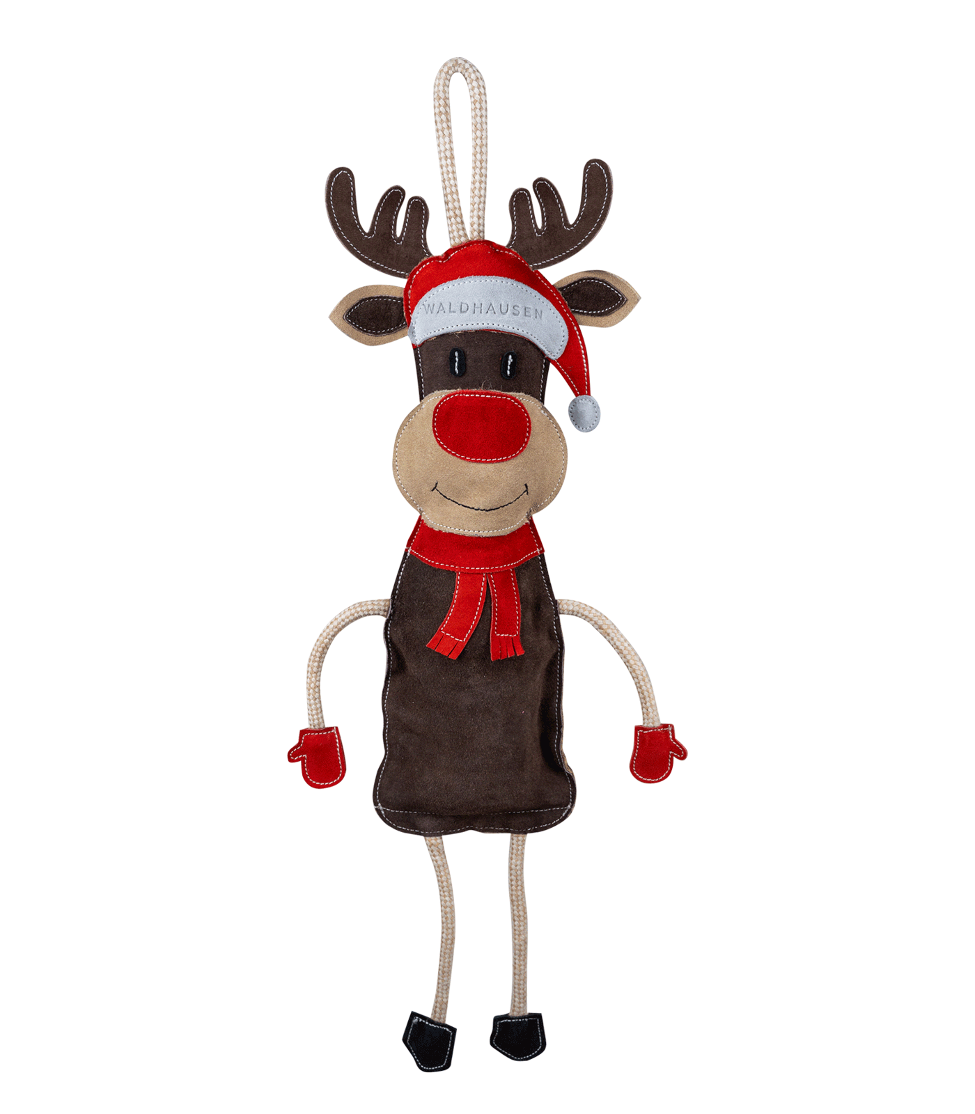 The Rudi the reindeer horse toy from Waldhausen will delight you with its pretty design. Rudi the reindeer helps against boredom. A cracking plastic noise is heard when the belly is pressed. The horse toy is easy to grasp and swing around. The plastic bottle can be easily removed or replaced thanks to a Velcro fastener. The toy can be hung up using the rope at the head.