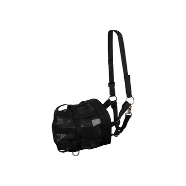Dit stevige zandmasker van fijnmazig mesh voorkomt dat je paard zand eet. Aan de binnenzijde is het masker bij de rand gevoerd met zacht neopreen zodat het masker niet schuurt. Het masker is verstelbaar voor een perfecte pasvorm en is makkelijk te openen en sluiten met behulp van de musketonhaak en het klittenband. Aan de onderkant bevindt zich een D-ring om een halstertouw aan te bevestigen.
