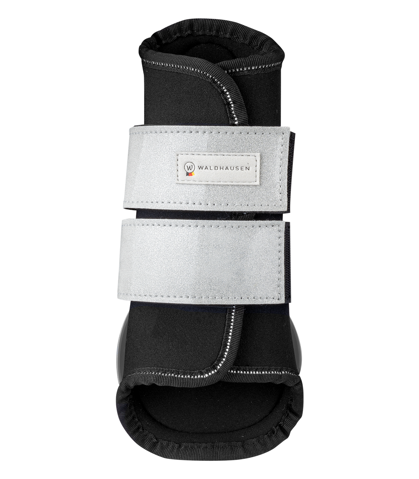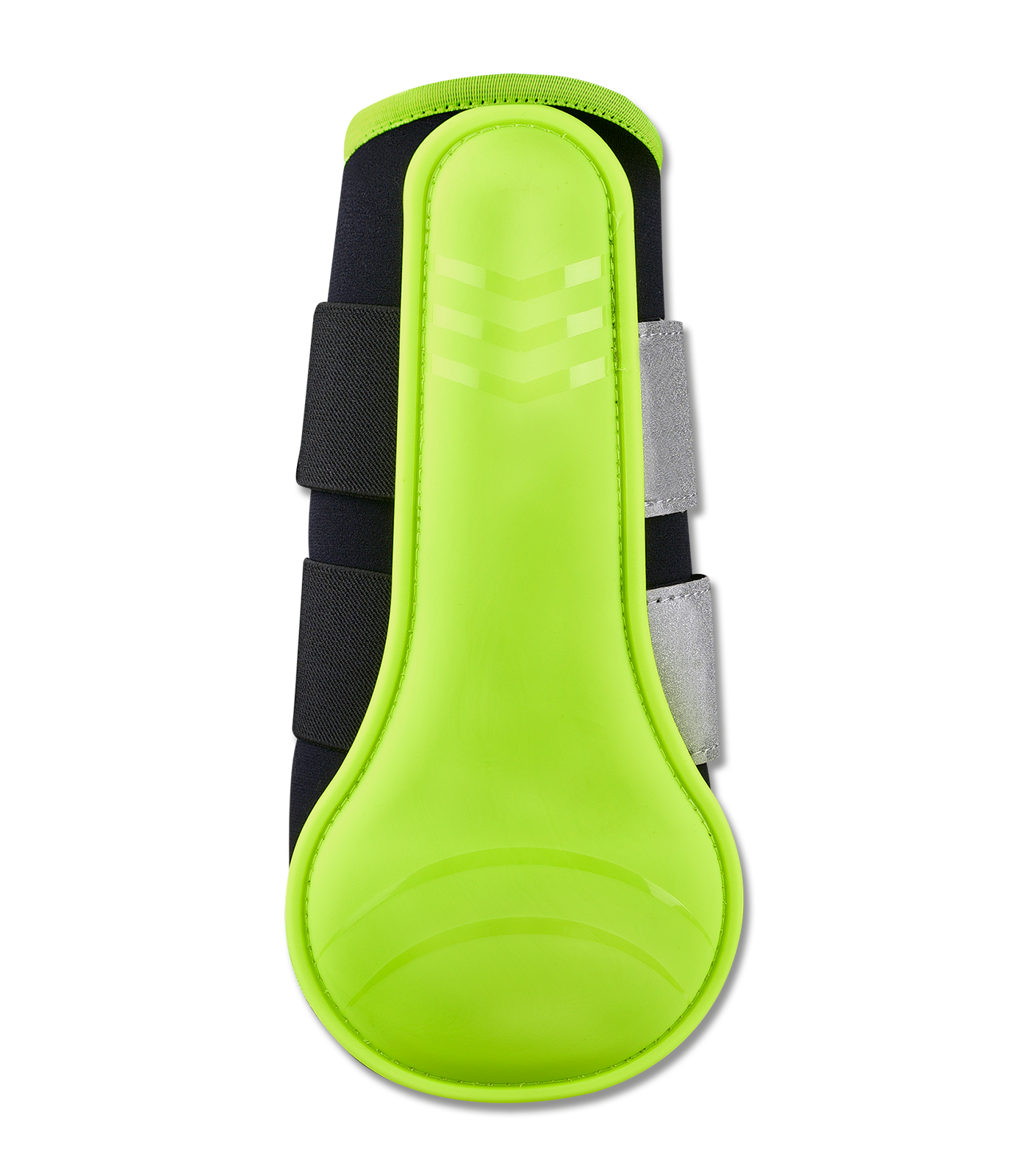 The sturdy moulded hard shell on the inside provides protection from knocks or brushing. With reflective touch tape fastening for good visibility in the dark. High quality and easycare soft material inside to securely enclose the horse"s leg and thus ensure all-round protection. Extra sturdy touch tape fasteners hold the boots securely on the leg. Pair.
