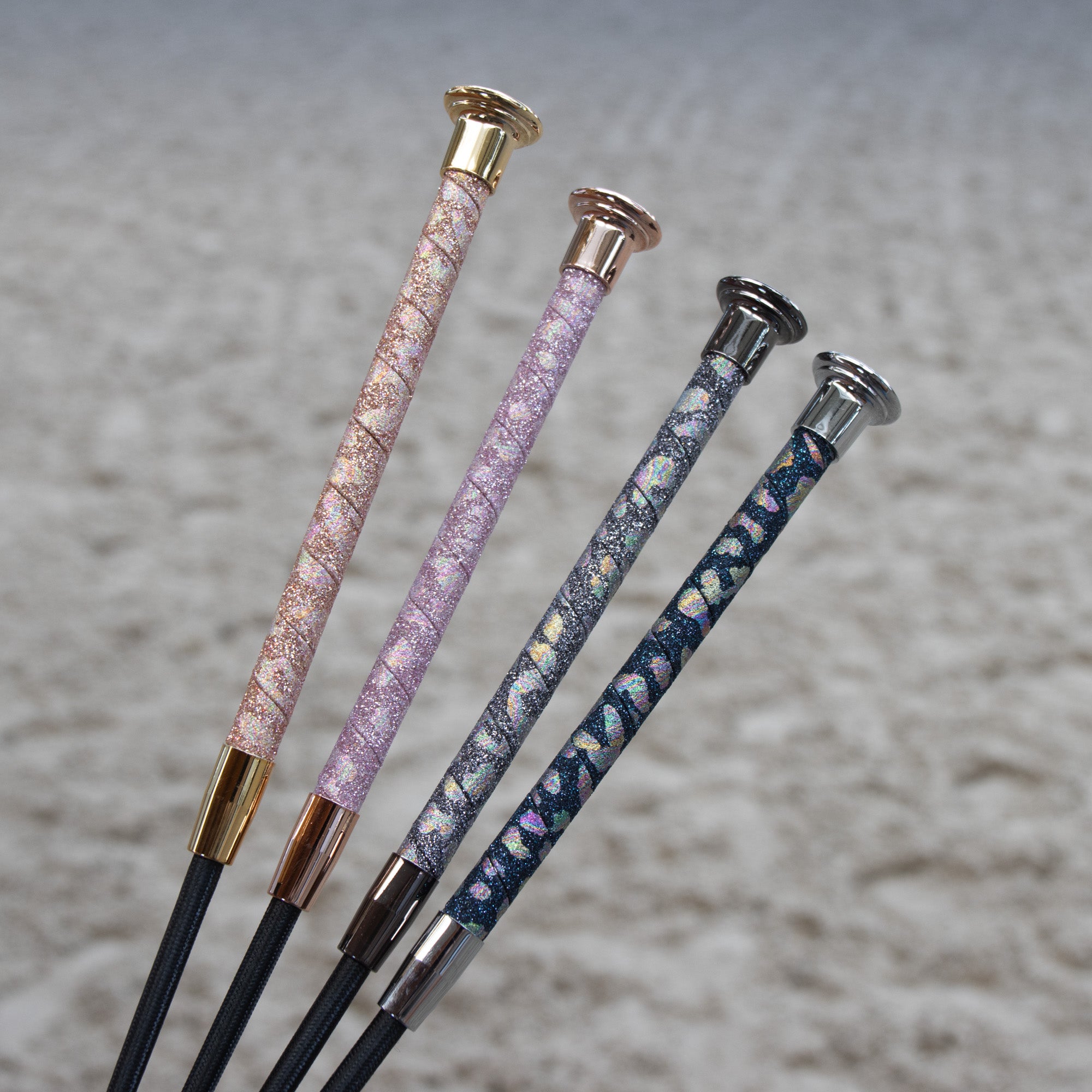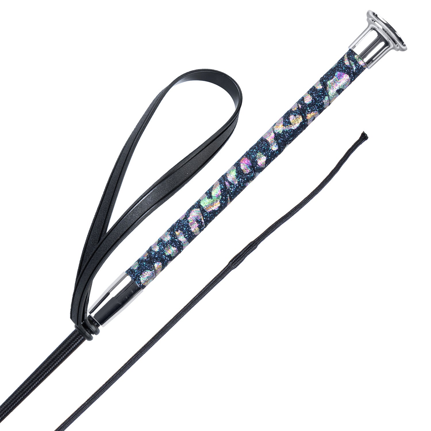 Rijzweep met gekleurd glitter panter handvat en een polslus.