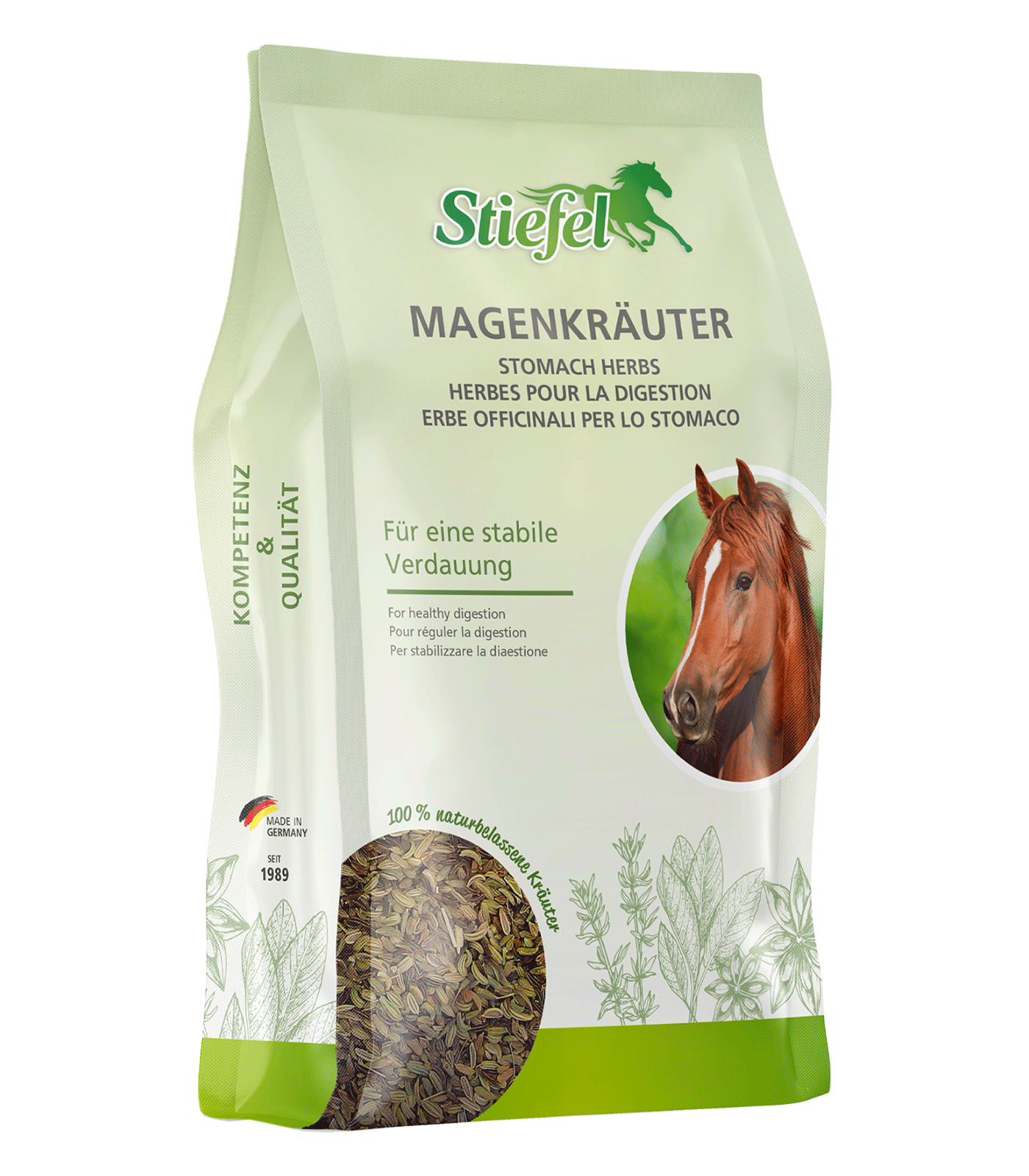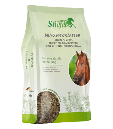 Supplementary feed for horses. Stiefel Stomach Herbs are a specially selected, natural herbal mixture intended to stabilise the horse"s stomach. The herbs can have a positive effect on the natural function of the stomach lining, optimise digestion and promote the normal consistency of faeces.