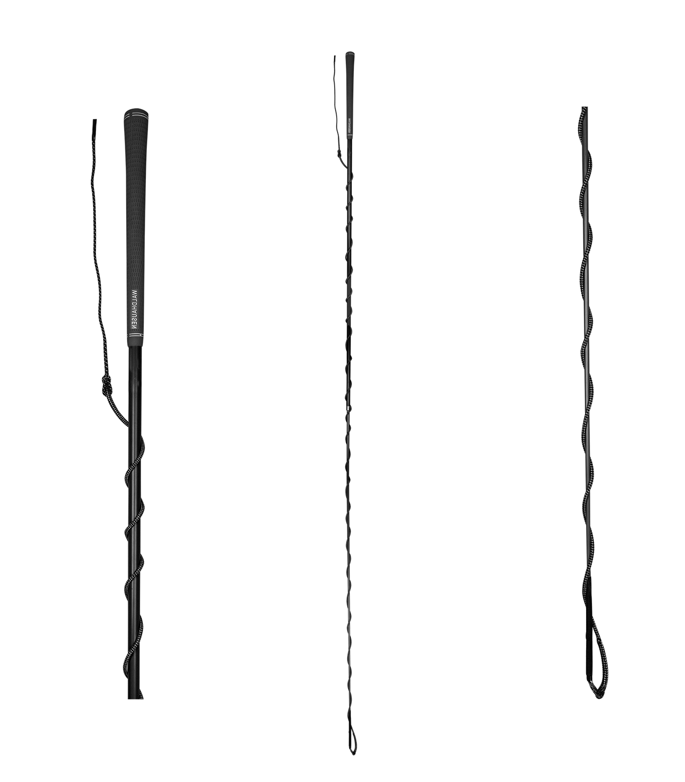 High-quality and extremely light telescopic whip with a nylon lash. Its carbon and fibreglass core, and resulting low weight (approx. 160 g), make this telescopic whip impressive. Say goodbye to tired arms. The non-slip, long golf grip sits extremely well in the hand. When folded, it is approx. 104 cm long.