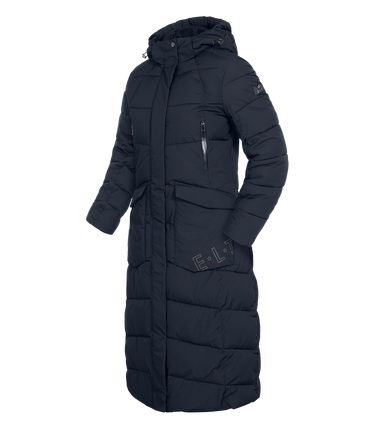 Lange gewatteerde jas met donsachtige vulling en uitgebreide functies