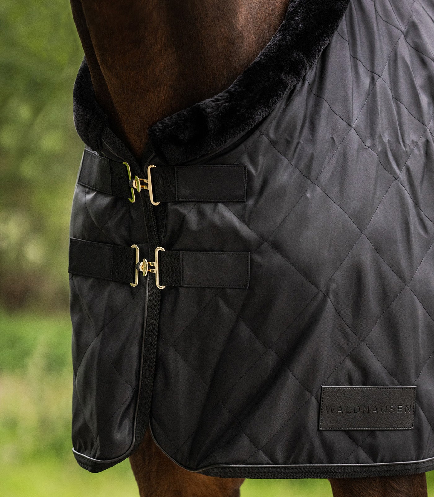 Reisdeken van hoge kwaliteit, gevoerd met kunstmatig konijnenbont voor koude dagen. Het konijnenbont slaat de lichaamswarmte van het paard optimaal op, is bijzonder zacht en voorkomt schuren. De deken is afgewerkt met een kraag van kunstbont. Met in lengte verstelbare en afneembare kruislingse riemen, dubbele T-sluiting aan de voorkant en metalen oogjes om een staartriem aan te bevestigen.