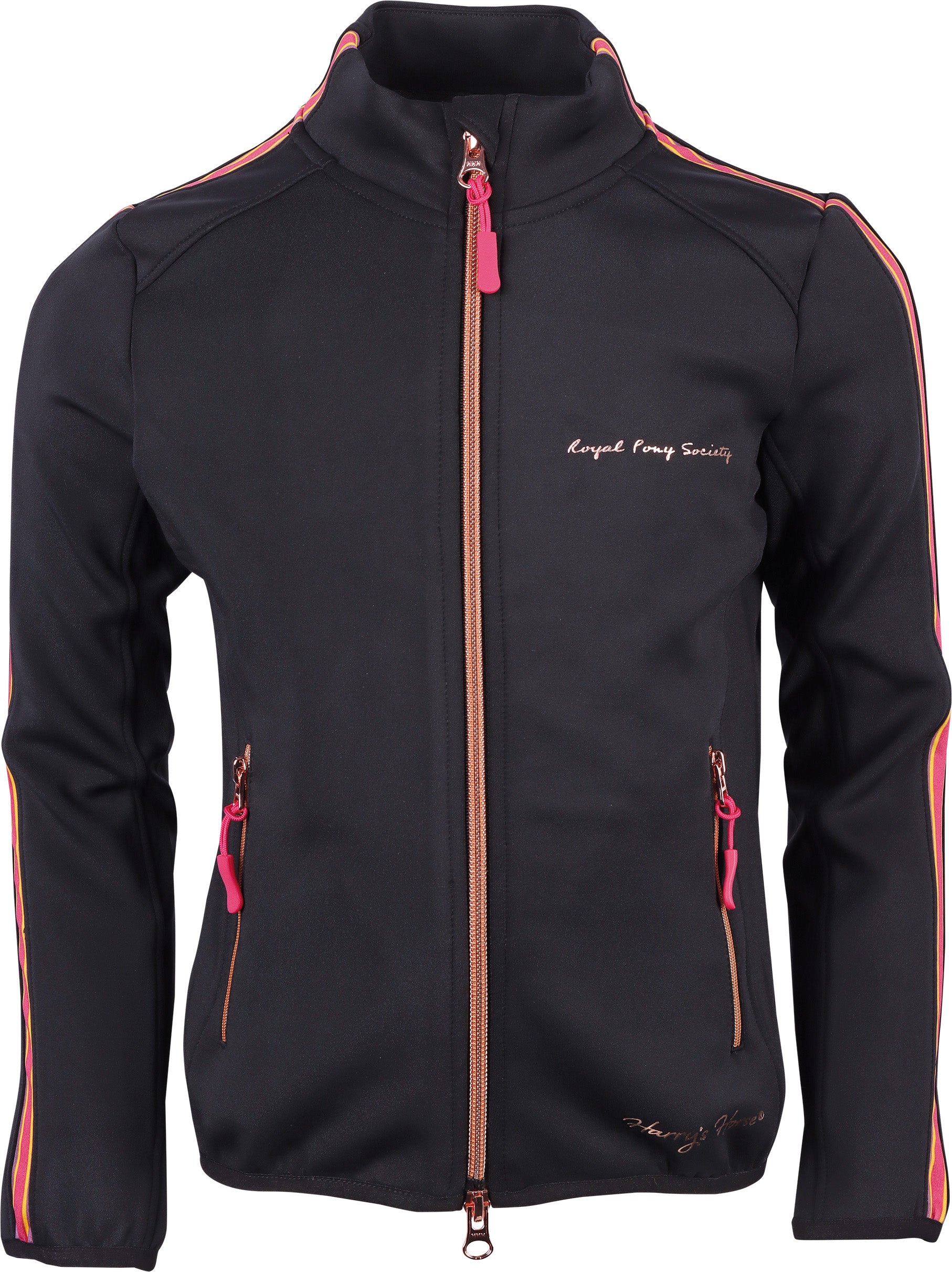 Vest met tweeweg ritssluiting, twee zakken met ritssluting en zipperpullers en met contrast strepen langs de kraag en mouwen.