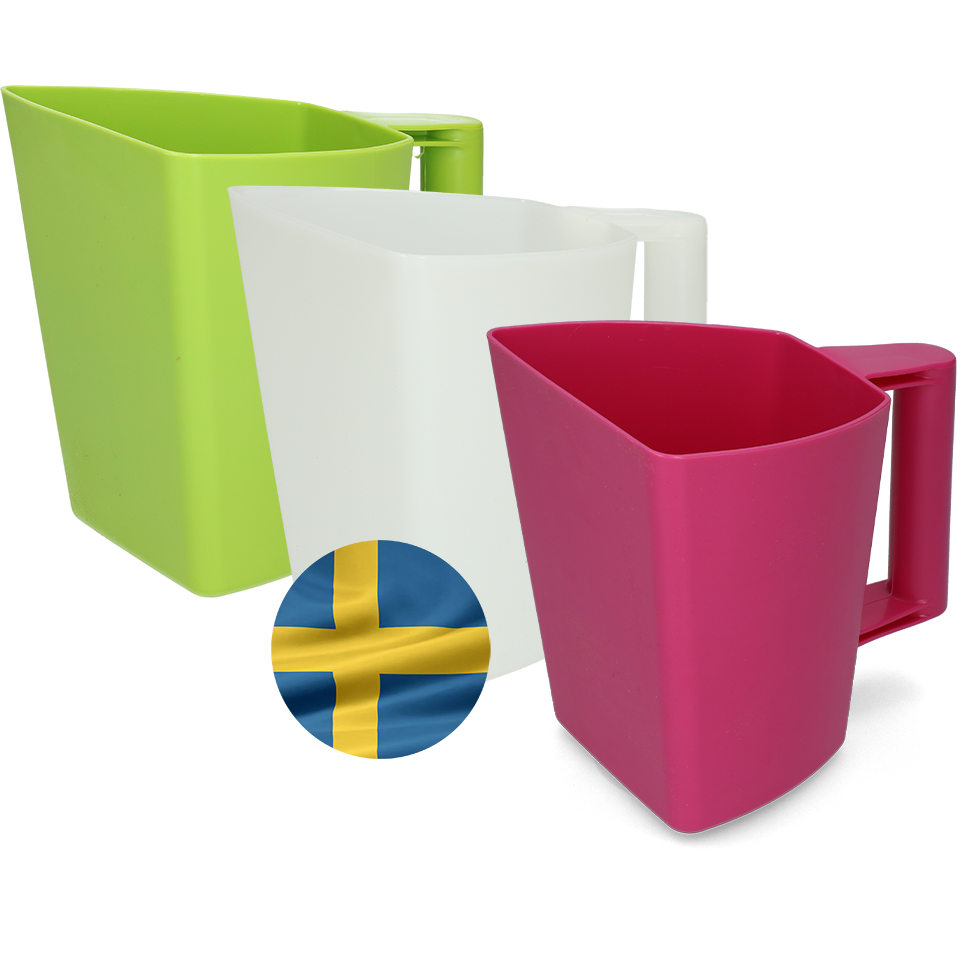 Stevige kunststof voerschep in bakmodel. Aan de binnenzijde is de inhoud aangegeven.