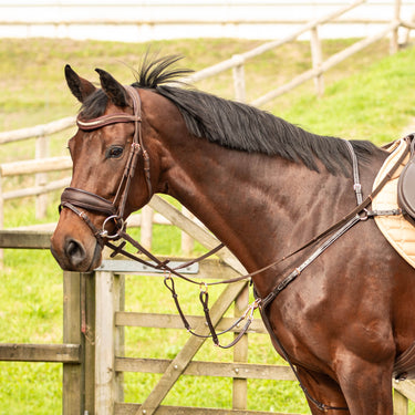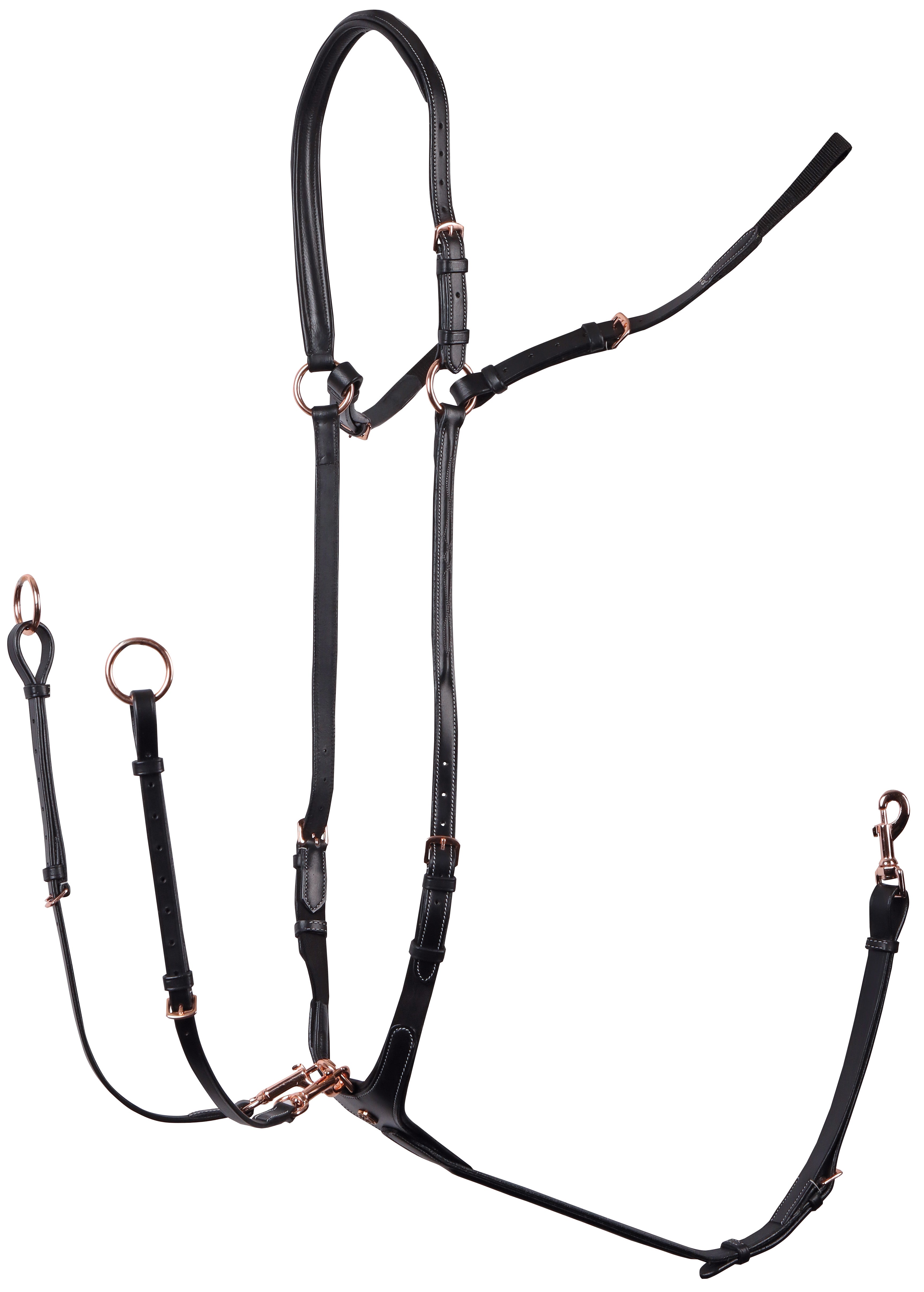 Met afneembare martingaal. Het voortuig kan met de verstelbare singellus aan de singel worden bevestigd.