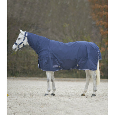 Twee traploos verstelbare klittenbandsluitingen op het nekgedeelte en bevestigingsriemen voor het halster.